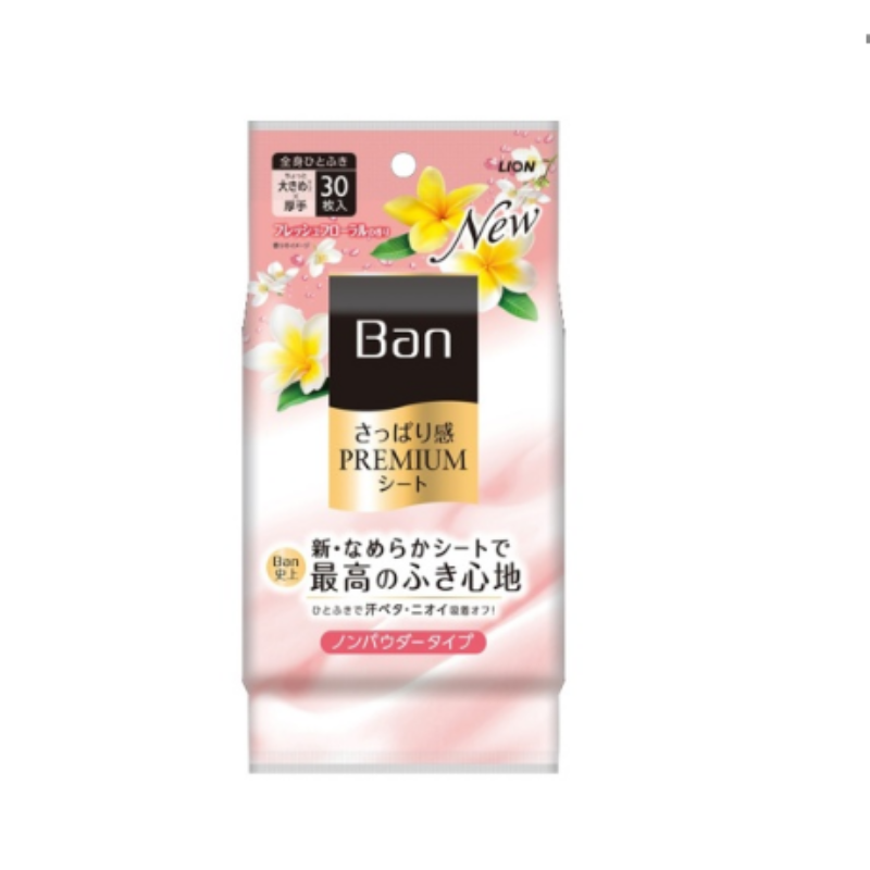LION Дезодорант д/всего тела Ban Premium Refresh Shower Sheets салфетки б/пудры,ар. волш. цветы,30шт