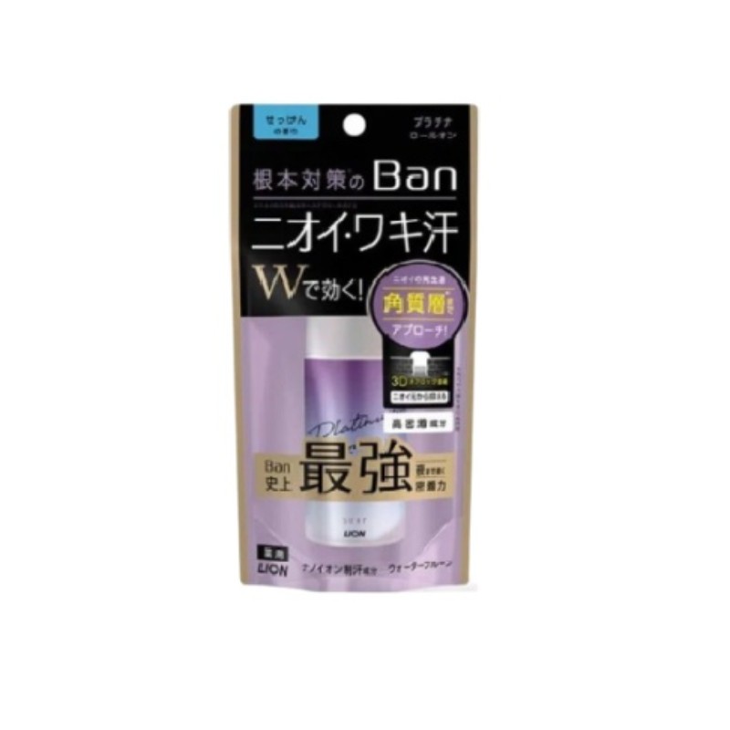 LION Влагостойкий дезодорант-антиперспирант Ban Platinum Roll On с ароматом цветочного мыла, 40 мл. 1/24