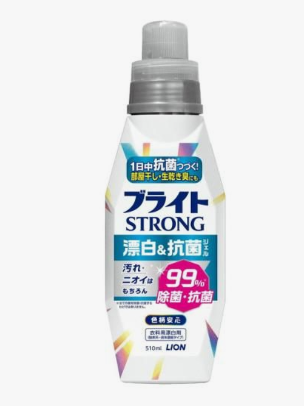 LION Bright STRONG Гель-отбеливатель кислородныйот стойких загрязнений для цветных тканей, 510 мл