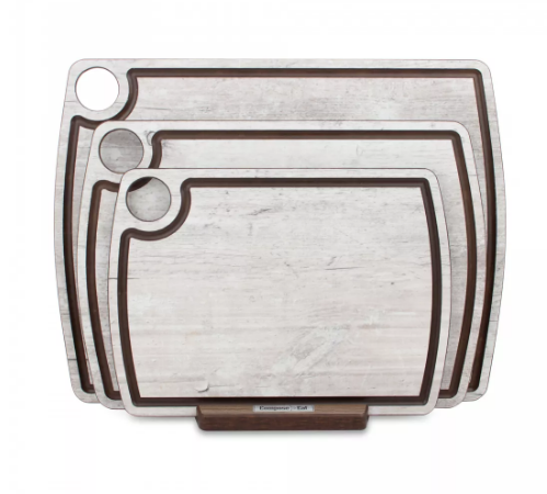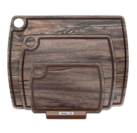 DRRJ33212088OA4 Доска с ручкой, разделочная с желобом, 33x21см, дуб коричневый, композитный материал