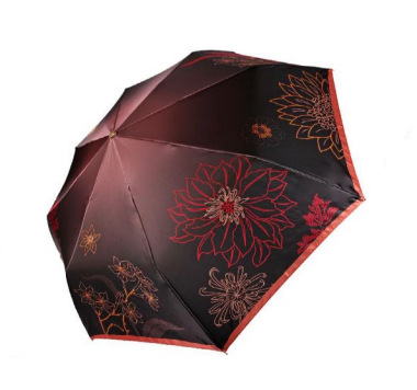 Зонт имеет трёхсложную конструкцию, что делает его компактным и удобным для переноски. Он легко поместится в сумку или рюкзак.